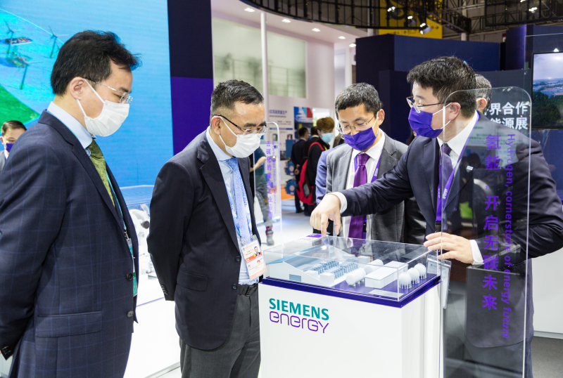 在西门子能源、施耐德电气、东芝展台,国机集团交易团与三家企业分别就先进技术赋能、“绿色智能制造”理念和实践、氢能源应用等内容进行深入交流。通过交流互动,国机集团与各方凝聚了共识,将积极寻求合作、相互促进。