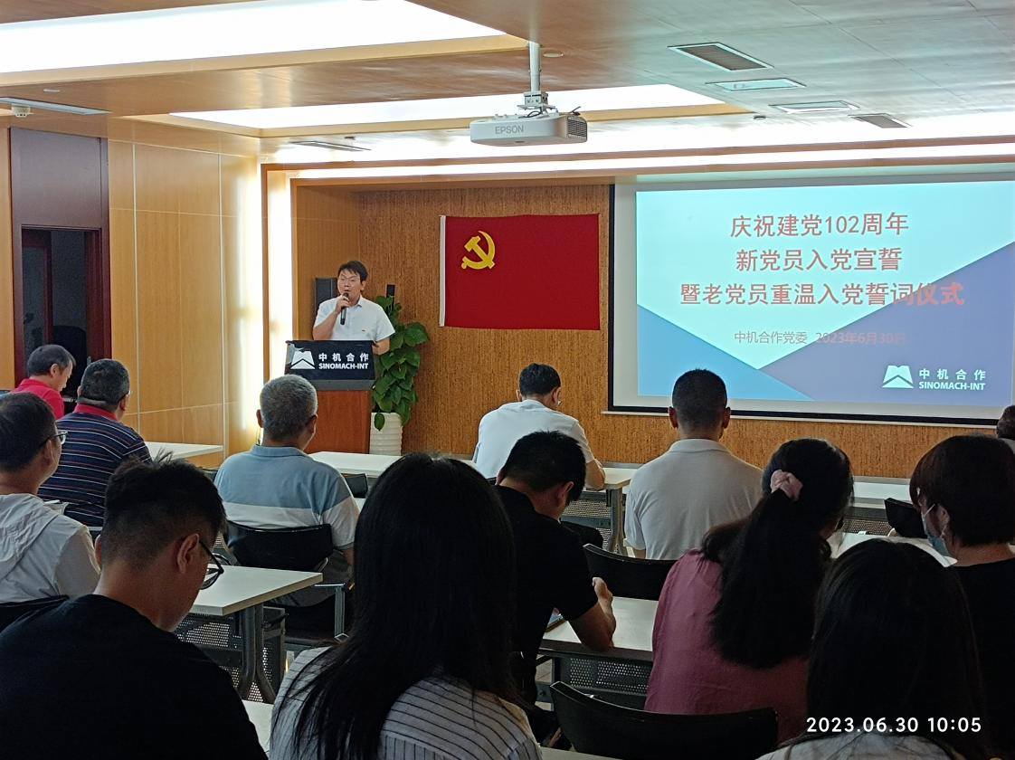 国歌嘹亮,誓词铿锵。6月30日上午,为庆祝中国共产党成立102周年,激励广大共产党员坚定信念、增强党性,不忘初心、牢记使命,奋进新征程,建功新时代,中机合作举行新党员宣誓和老党员重温入党誓词仪式。中机合作党委书记、董事长、总经理郭春阳参加并讲话。