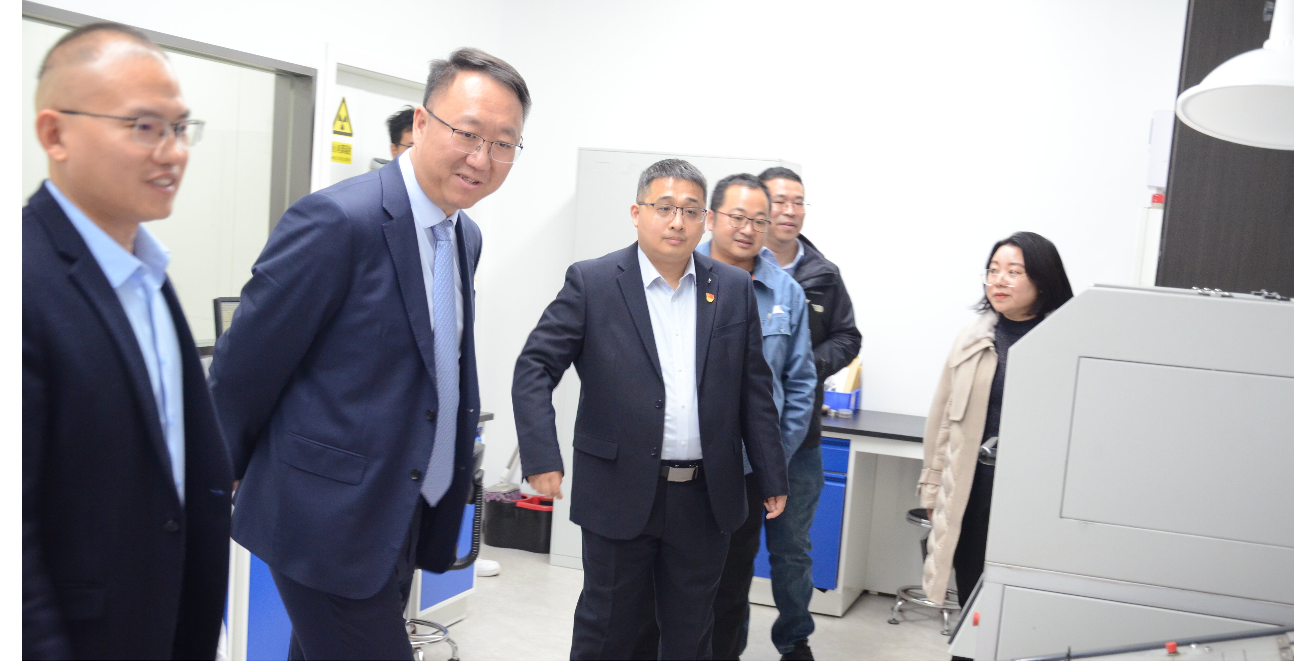 闫宁一行深入实验室现场,对实验室的设备运行状况、危险化学品的存储与使用、气瓶间的管理、消防设施的配备以及安全制度的落实等方面展开了重点检查。每至一处,皆认真查看,详细询问,并与实验室工作人员深入交流,全面了解员工在日常工作中对安全问题的认知程度和处理措施。